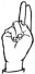 На ћирилици написано БЛАЖА РЖИЋ састоји се из 9 слова [?]. Исписано ћириличном једноручном азбуком за глувонеме: